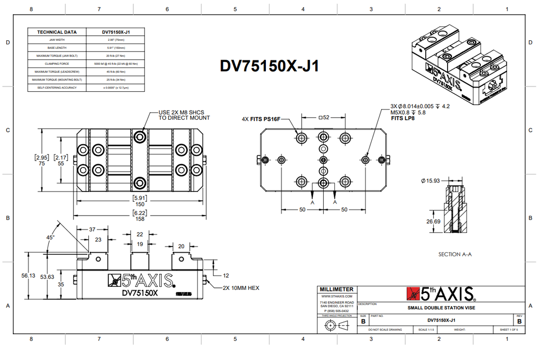다재다능한 작업 고정: DV75150X의 적응형 죠와 여러 클램핑 옵션은 광범위한 작업물 크기, 모양 및 재료를 수용합니다. 이 바이스의 핵심은 다재다능함으로, 다양한 가공 프로젝트의 요구 사항을 충족합니다.