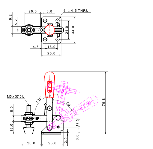 100 199 62˚ 101˚ M6 x 58.0L 58 U Middle Angle Low