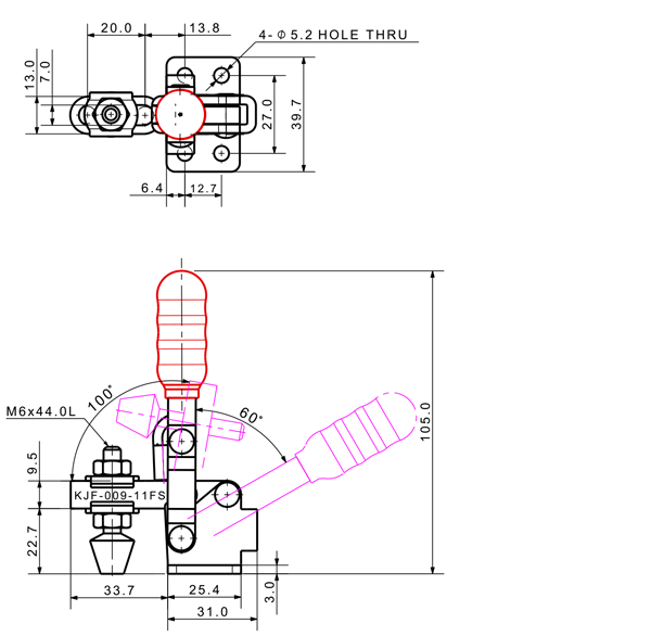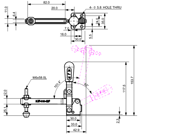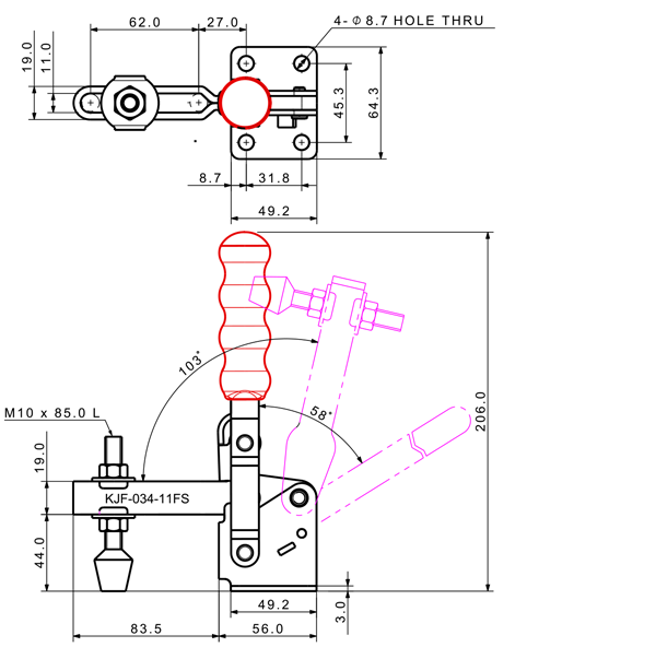 100 207 62˚ 101˚ M6 x 58.0L 82 U Long Angle Low