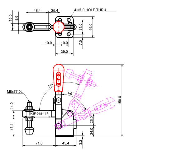 180 466 66˚ 114˚ M8 x 77.0L 48 U Short Angle Low