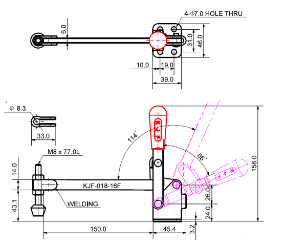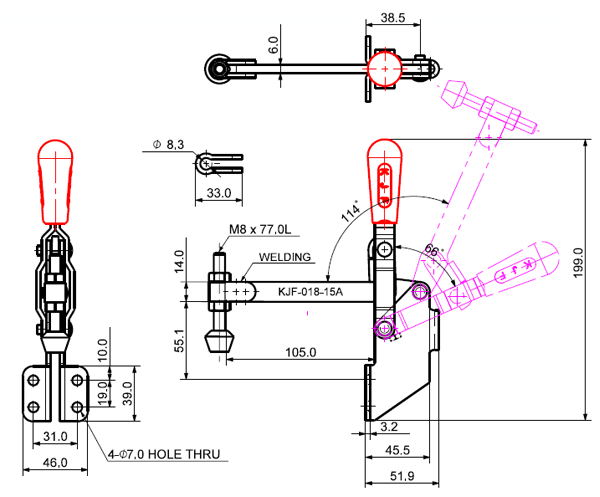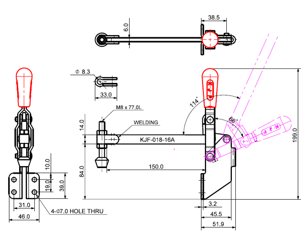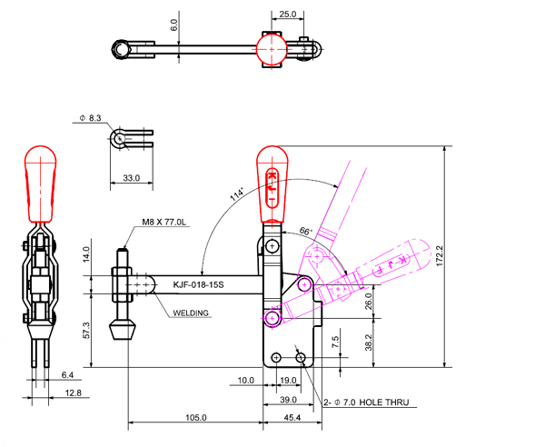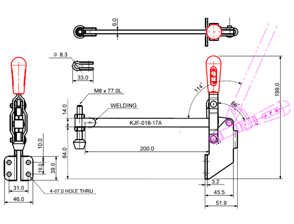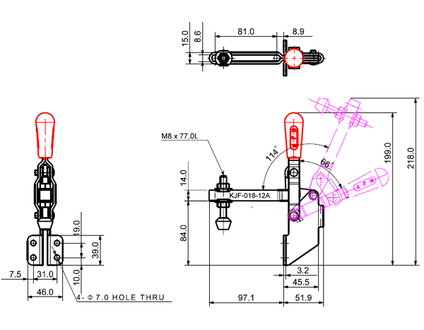 180 503 66˚ 114˚ M8 x 77.0L 98 U Middle Angle Low