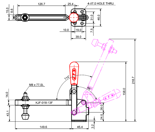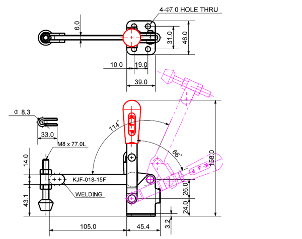 180 431 66˚ 114˚ M8 x 77.0L 98 U Middle Flange Low