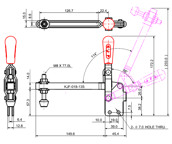 180 449 66˚ 114˚ M8 x 77.0L 127 U Long Flange Low