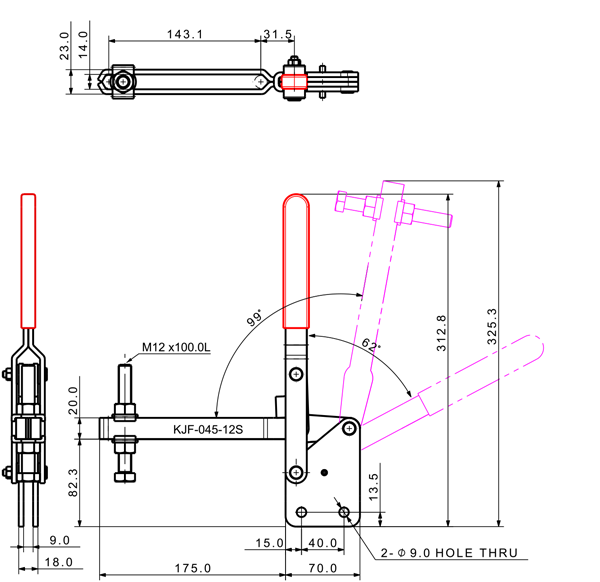 100 175 62˚ 101˚ M6 x 58.0L 58 U Middle Straight Low