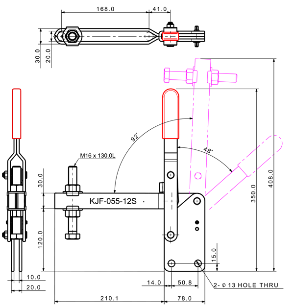550 2540 48˚ 92˚ M16 x 130.0L 168 U Long Straight Low