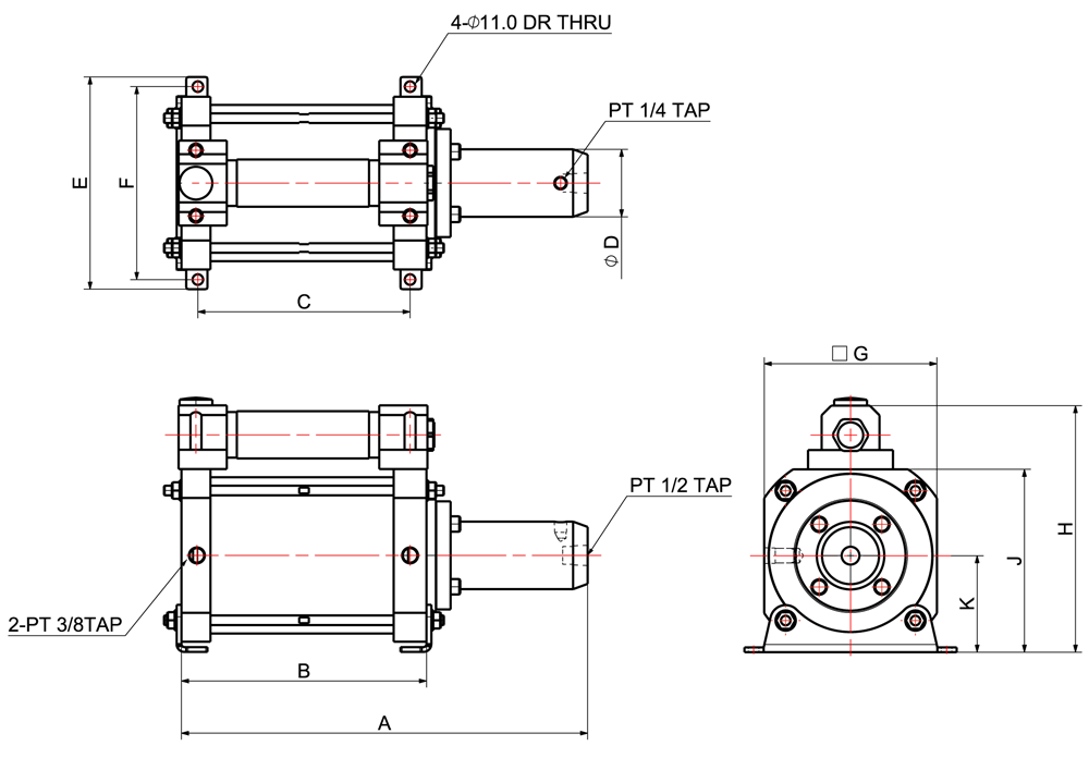 | HBH-1108 | 11:1 | 80cc | 3.2~9.9kgf/㎠ | 35~109kgf/㎠ | 23.0kg |